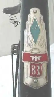 Здесь интересно, как эмблема старого образца Харьковского велосипедного завода (ХВЗ), с надписью "СССР" сверху, преобразовалась в более блестящую (хромированную), но уже без надписи СССР.