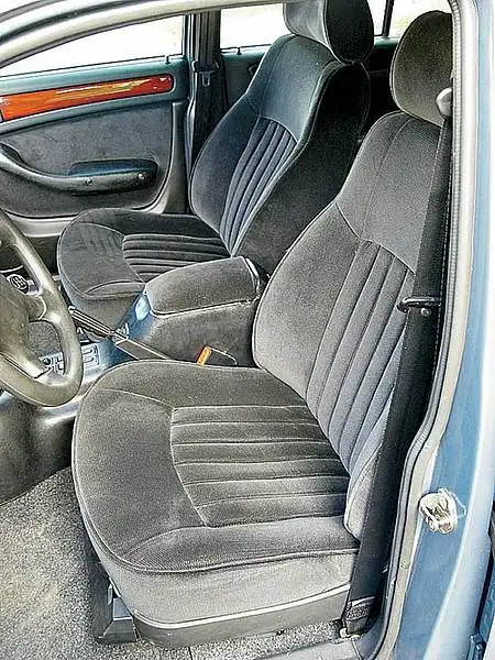 А центральный замок наверняка станет дополнительным оборудованием. Поворачиваем ключ, щелкают фиксаторы. Что будет "у всех" внутри? Новые сиденья с уменьшенной толщиной подушки и развитыми боковыми валиками спинки держат водителя лучше. Подголовники тоже новые. Но главное, иной контур сиденья изменил посадку водителя - теперь высокому или полному значительно удобнее за рулем. И голова в потолок не упирается, и живот крутить баранку не мешает. Ведь раньше немало нареканий было на то, что при очень просторном салоне "Волга" оставалась тесной для крупного водителя. А вот механизм регулировки сиденья прежний - не самой совершенной конструкции и исполнения.
