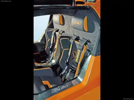 Малый вес этого болида был достигнут использованием материалов на основе высоких технологий: приборная панель, в виде монокока, сделана из углеродистого волокна; ковшеобразные сиденья также изготовлены из карбона. Место сиденья определяют индивидуально для каждого клиента, так же как и тип обивки. Подгоняют педали и рулевую колонку. Владелец Gumpert Apollo может чувствовать себя комфортно в салоне: кондиционер воздуха, качественная навигационная система с интегрированной камерой заднего вида, CD/DVD-проигрыватель и все, что вашей душе угодно.