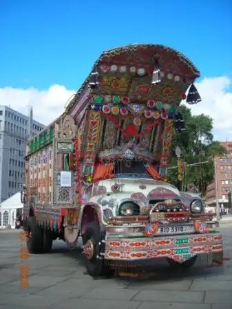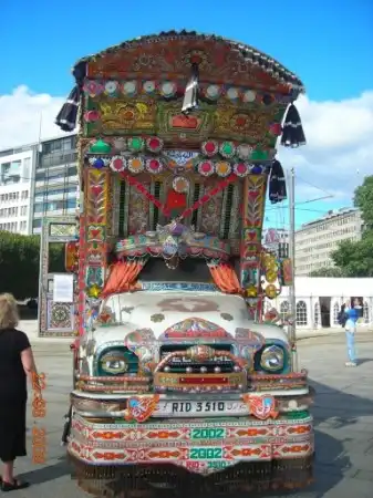 Не только, в Пакистане, Афганистане, Индии любой перевозчик должен вступить в клан, который тебя прикроет, поможет и т.д.. Без этого там никак. Так вот раскрашивание своего транспортного средства чел делает в соответствии с правилами клана, чтобы издалека была видна принадлежность. И только потом уже руководствуются религиозными и прочими мотивами.