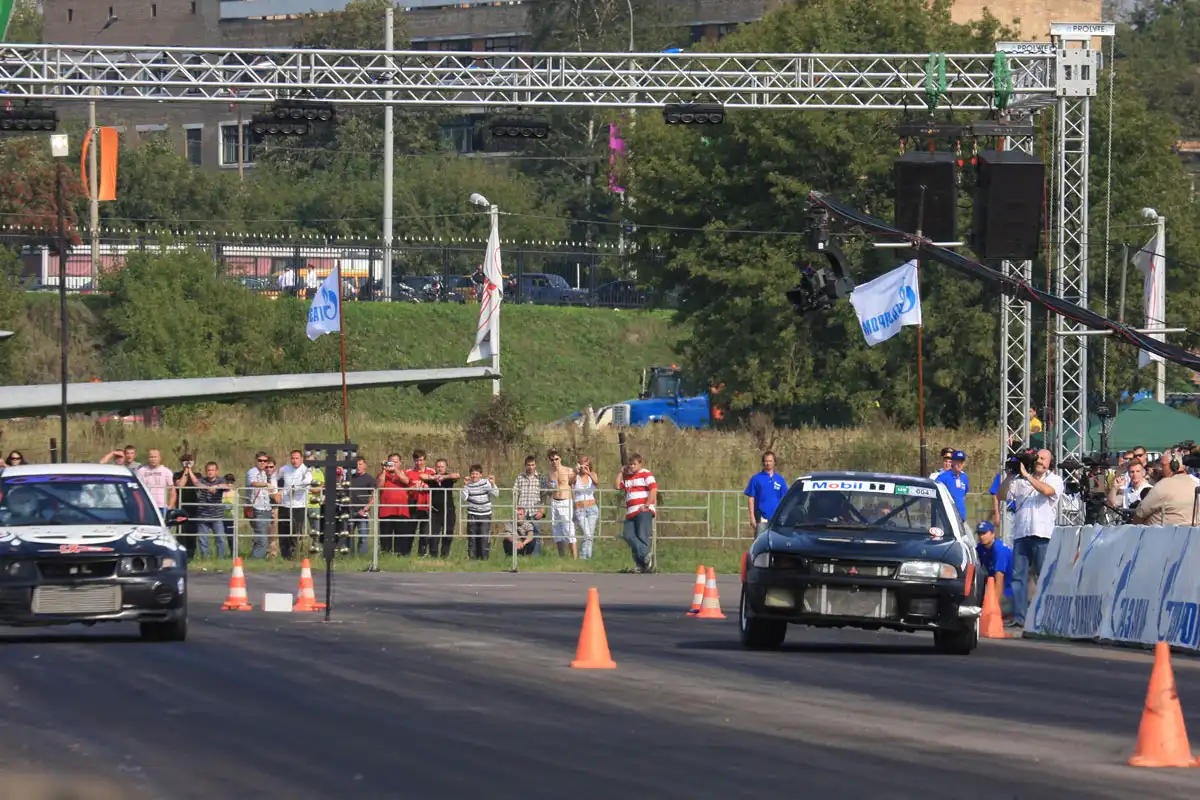 От Москвы тоже участвовали неплохие машины: в классе US (Unlimited Street, легковые авто с объемом двигателя свыше 4 000 куб см.) гонялся шикарный Ford Mustang GT Олега Белькова, очень много злых Эвиков в классе FS-B (Fast Street-B, легковые авто с объемом двигателя от 2 500 до 4 000 куб см.) — среди них известные московские гонщики Иван Воробьев (он, кстати, участвовал на принадлежавшем в свое время Сергею Горковенко Lancer Evo VI, который «дубасил» по трассе быстро и стабильно — все времена были в пределах 9,7 секунд), Сергей Игнатко, известный как Megion, Алексей Федоров, Михаил Хозинский. Да и на «тазики» в FS-A (Fast Street-A, легковые авто с объемом двигателя до 2 500 куб см.), которые стабильно едут по 12 с копейками секунд, было интересно посмотреть.