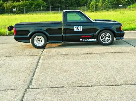 Ни под одно из этих описаний, этот симпатяга-пикап не подходит, хотя и является истинно дрэговым автомобилем, способным проехать квотер за 8,98 секунды со скоростью на выходе 250 километров в час. При этом, имея стандартную внешность, скромный черный цвет, вполне симпатичный стоковый салон, родной руль и пару педалей.