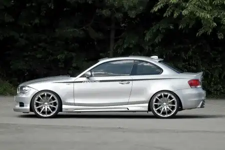 Остальной «фарш» новенькой BMW 135i определился модернизированной подвеской с заниженным на 25 мм клиренсом, высокопрочной тормозной системой и колёсными дисками в 20-дюймовом формате с шинами размерности 245/30. В добавок ко всему — спортивный боди-кит с парочкой спойлеров и диффузором из карбона.