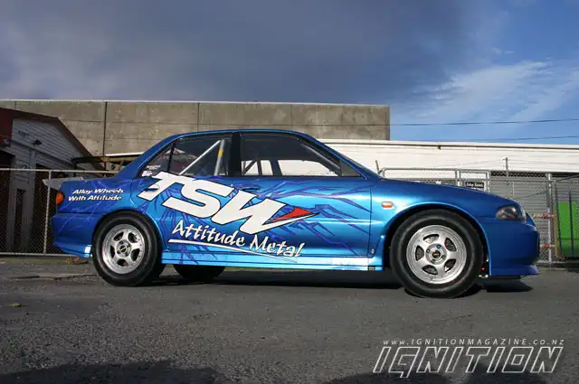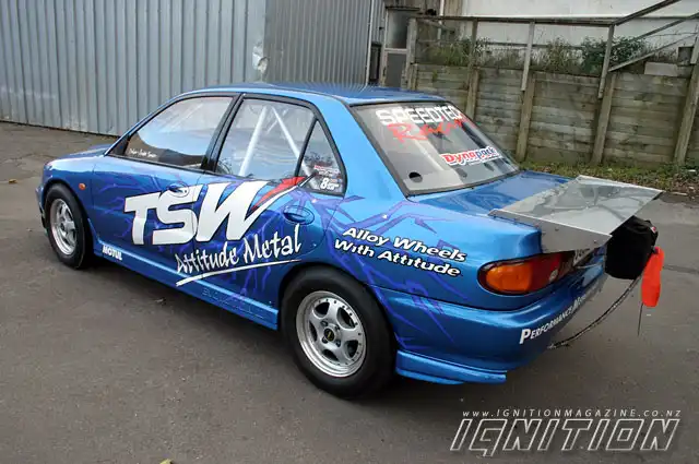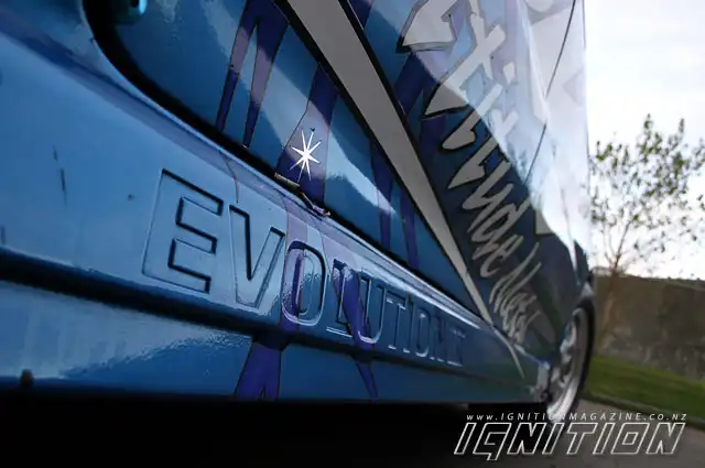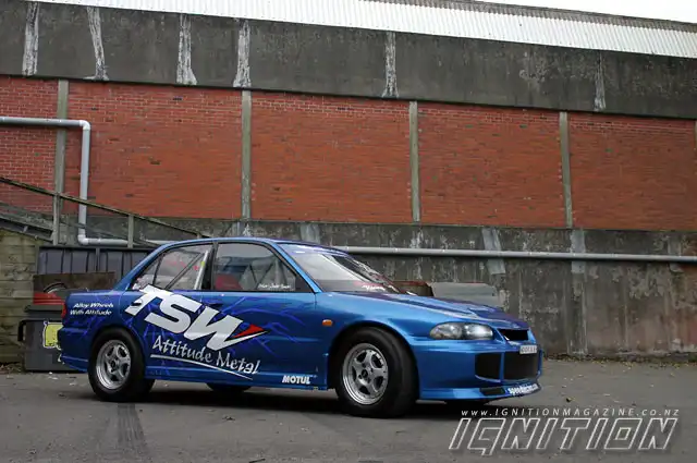 Этот Evo является одним из известнейших драговых автомобилей в Новой Зеландии, и доказательством тому служат многочисленные трофеи, завоеванные в жестоких схватках с соперниками. Он покрашен с насыщенный синий цвет снаружи и изнутри, во всю длину борта на нем красуется надпись TSW Wheel. Увидев его однажды, этот автомобиль не забудешь и не перепутаешь ни с кем.
