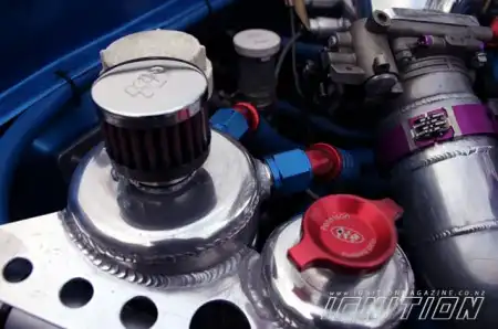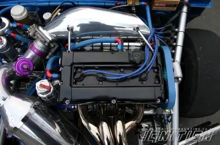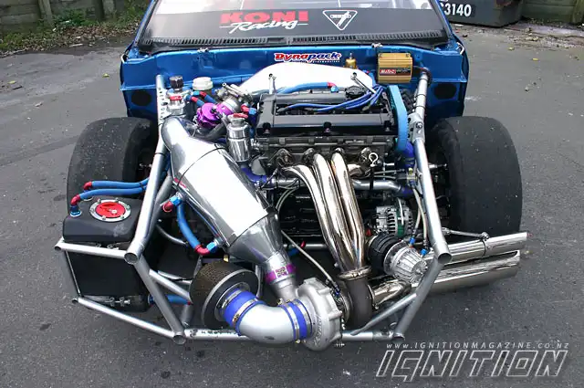 Двигатель 4G63T, заказные кованые поршни JE, заказные кованые шатуны Carrillo, кованый блок, высокоэффективный масляный насос, изготовленная на заказ система масляного орошения, прокладка головки блока цилиндров HKS Competition, эксклюзивный крепеж STM, двигатель полностью сбалансирован и обработан химических составом в соответствии со спецификацией STM, головка расточена и отполирована и снабжена клапанными пружинами, фиксаторами и клапанами CC, заказные распредвалы Billet, цельнометаллические толкатели, настраиваемые кулачки распредвалов HKS Vernier, 90-мм впускные патрубки из сплава, 90-мм дроссельная заслонка, изготовленный на заказ пленум, заказной стальной коллектор, шарикоподшипниковая турбина HKS T51R, 60-мм вейстгейт HKS GT, водно-воздушный интеркулер с дополнительным охлаждением льдом типа Barrel, перепускной клапан Tial Racing, зажимы шлангов Wiggins Aerospace, топливный бак на 10 литров, топливный насос Weldon для метанола, топливные фильтры Peterson, заказная двойная топливная рейка, 8 инжекторов объемом 1 800 для метанола, настраиваемый регулятор давления топлива Weldon, 4 катушки зажигания Motec, провода Top Gun 8,8 мм, 100-мм стальной выпуск, 65-мм расширительный бачок для масла, заказной расширительный бачок для ОЖ, блок управления двигателем Motec M800 и Motec E888, усилитель зажигания Motec CDI4.