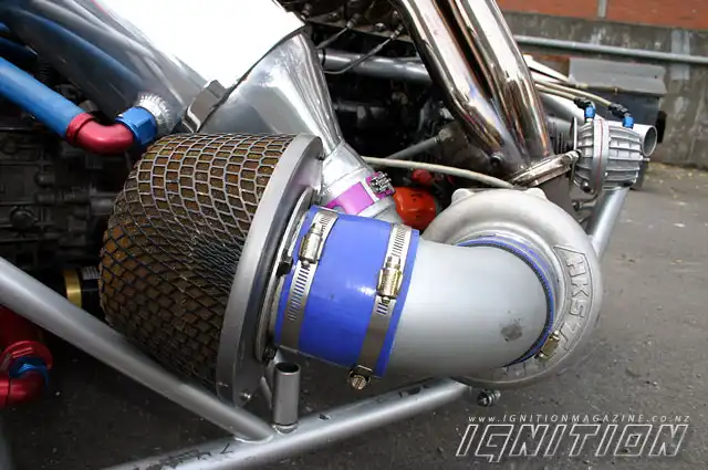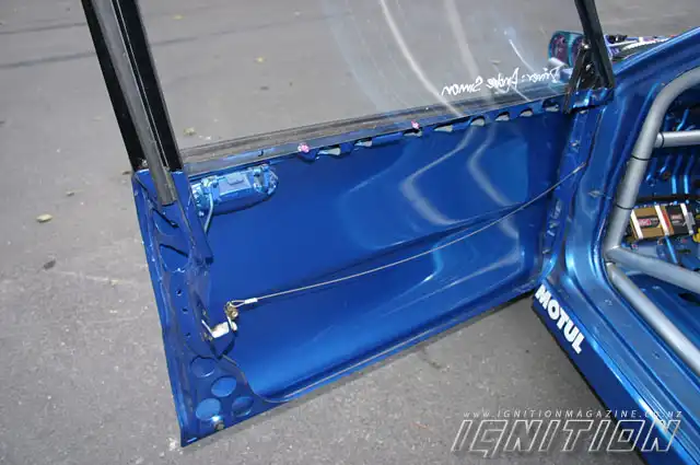 Когда-то обычный уличный автомобиль, этот Mitsu за несколько прошедших лет превратился в исключительно драговый аппарат. Отсутствие необходимости соответствовать требованиям комфорта и общепринятого внешнего вида имеет свои неоспоримые преимущества: в угоду скорости из авто исчезли почти все опции, предлагающие комфорт при обычной езде по дорогам общего пользования. Так, полностью стальная передняя часть была заменена трубчатым каркасом. Основой для этого каркаса служит полая карбоновая оболочка, заполненная вакуумом, которую изготовили на заказ мастера из Carbonglass. Данная конструкция не только значительно снижает массу автомобиля, но и позволяет Андрэ размещать под капотом любые компоненты в тех местах, какие он посчитает подходящими, включая размещение специфической драговой подвески. Чтобы автомобиль все же напоминал выходца с фабрики Mitsubishi, на его переднюю часть была нанесена вполне правдоподобная аэрография в виде фар, что может ввести в заблуждение непросвещенных. Жертвой болгарки стал не только передок машины: все двери также лишились своего первоначального вида, и единственной причиной, по которой их оставили на месте, является аэродинамика кузова и некая эстетика. Задняя часть машины также значительно легче, чем у стоковых автомобилей, благодаря тщательной работе плазменного резака, при помощи которого удалили совершенно ненужный теперь пол багажника.
