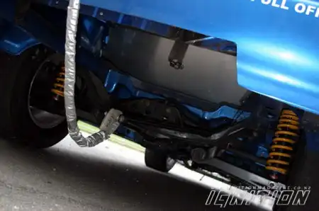 Супермощный двигатель, невесомый корпус и неубиваемая трансмиссия требуют должной подвески, и здесь она есть. В случае с трансмиссией идеал был найден путем проб и ошибок: несколько раз только мастерство пилота спасало аппарат от столкновения с другими машинами (ему просто приходилось уезжать в кювет). Оригинальную подвеску заменили на двухрычажную спереди, с настраиваемыми койловерами. Задняя подвеска также претерпела изменения: стандартные стойки заменили на, опять же, регулируемые койловеры. Такое сочетание отлично проявило себя во время недавних тестов. Надеемся, что эти изменения позволят Lancer показать еще более впечатляющий результат и приблизиться к отметке в 7 секунд.