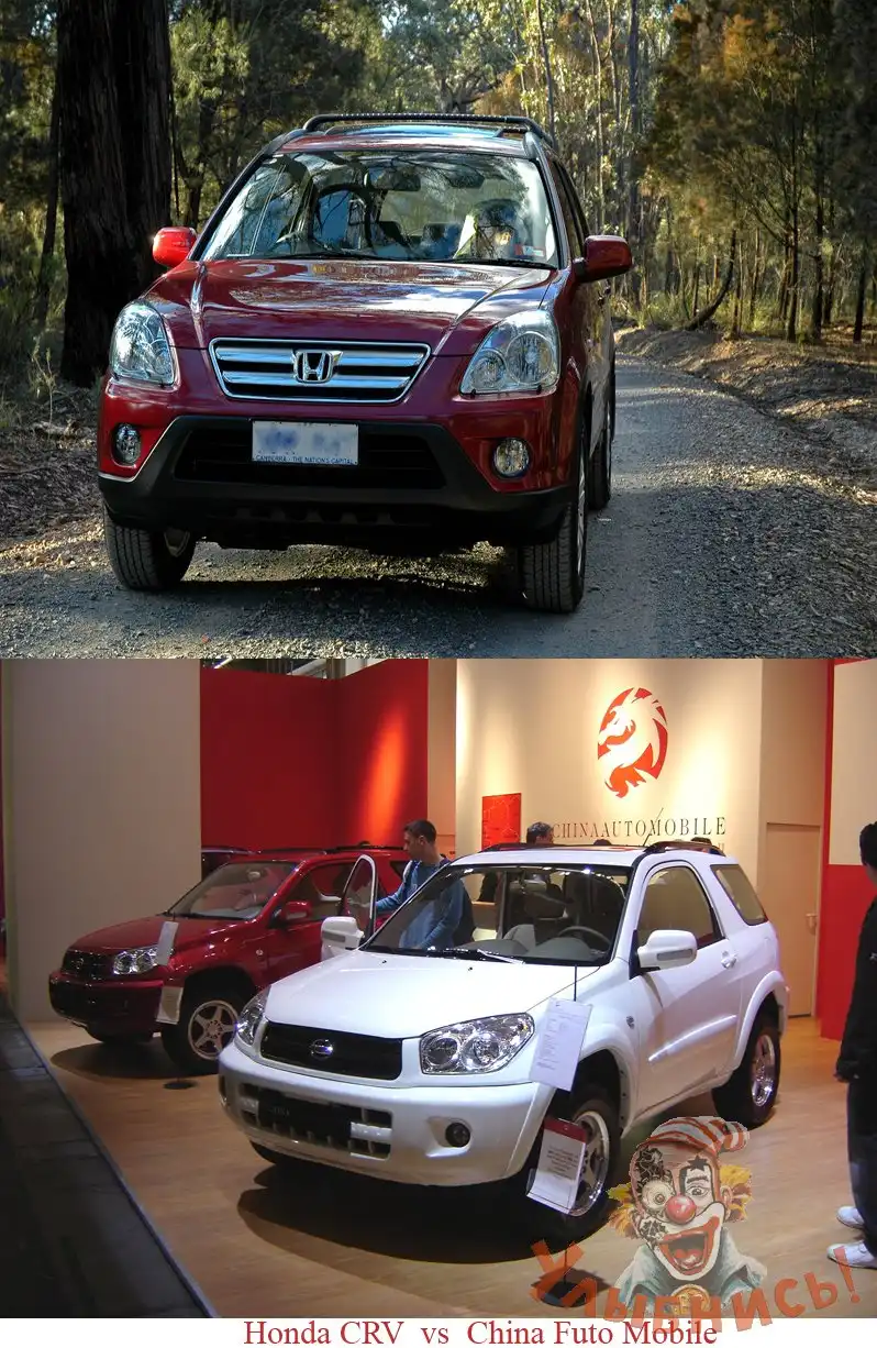 На первой скорее не на ЦРВ похожа, а на Рав-4... А вообще на сколько я знаю, некоторые китайские фирмы, типа Греат Вол, купили лицензию на копирование японских авто 1 в 1 и не скрывают этого в общем-то...
