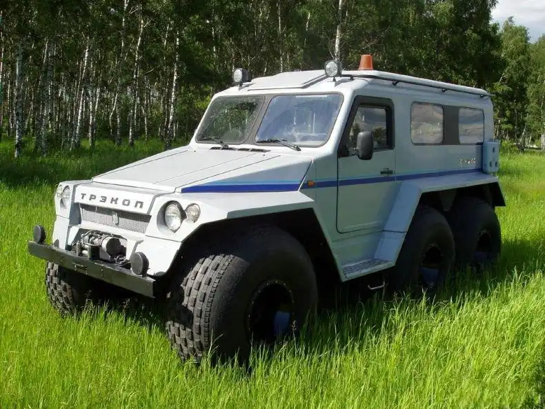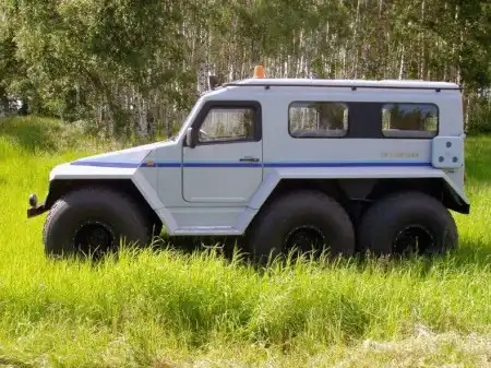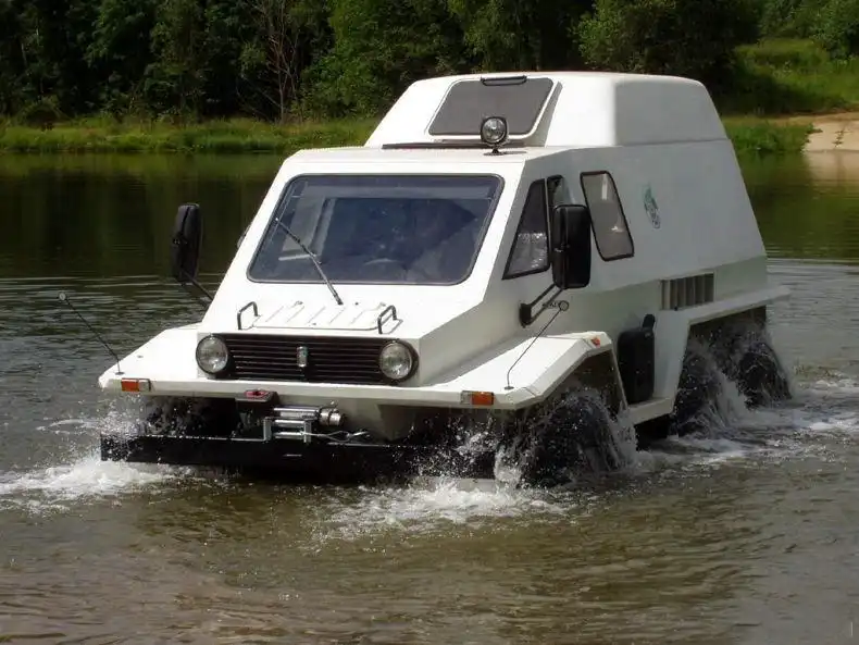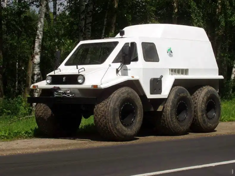 ТРЭКОЛ - плавающий внедорожник, возможностью эксплуатации при температуре от – 60 °С до + 60 °С, вместимостью – 8 человек. Максимальная скорость – 80 км/час, на воде – до 8-10 км/час.