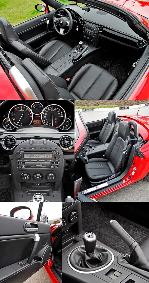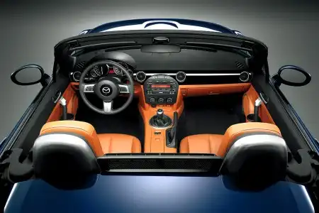 Салон Mazda MX-5 Roadster Coupe несет в себе наследственные черты спортивного, «заводного» характера автомобиля. Аналогичным образом предлагается три варианта отделки: коричневой кожей, черной кожей и черной тканью.