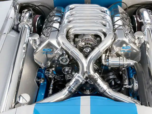 В результате пришлось выходить из сложившегося положения другими путями. Двигатель автомобиля рабочим объемом 4,6 литра состоит из усиленного стального коленчатого вала, шатунов Crower, коренных подшипников Clevite, поршней JE и поршневыми кольцами Total Seal. Степень сжатия в таком моторе - 8,5:1 Данный силовой агрегат оборудован головками блока цилиндров от Ford GT с клапанами Comp Cams и распределительными валами FMS. Разработанная по индивидуальному заказу система впуска «кормится» с помощью двух 72-миллиметровых дросселей. Сдвоенная система Turbonetics нагнетает давление в 12 psi. Данный силовой агрегат с Twin Turbo может похвастаться мощностью в 839 л.с. при 8700 об/мин на топливе с октановым числом «93». Но создатель вполне справедливо полагает, что легко может прибавить ему еще пару сотен лошадей - за свет увеличения давления наддува и лучшего бензина.