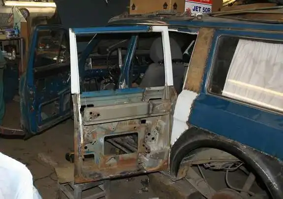 3. После тщательных замеров началиь кузовные работы и тотальная замена сгнивших элементов. На свалку отправились крылья, за ними – передняя «юбка» и правая водительская дверь. Но прогнило явно не все: за это спасибо бельгийской сборке и заграничной эксплуатации