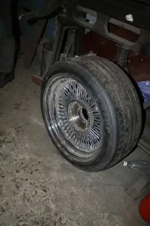 4. Из Штатов заказали 17-дюймовые 100-спицевые диски с «нок-офф»-исполнением (когда колеса крепятся единственной центральной гайкой). Подлатали прогнившие арки и сняли рессоры, оставив один лист, чтоб продемонстрировать лоурайдеровский клиренс. Хоть так, ведь гидравлика из США еще не приехала. Но время ожидания даром не прошло: мотору был сделан капремонт