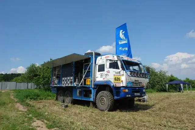 Автомобиль сопровождения. В «техничке» есть все необходимое: душ, спальные места и кухня.Характеристики КАМАЗ 635050
