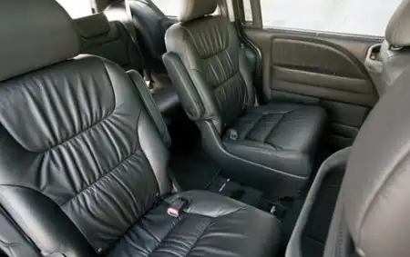 В интерьере повеяло будущим. Красочная приборная панель и руль в стиле «космолёта» Civic, угловатые дефлекторы обдува, традиционная для Хонды свалка мелких кнопок и маленьких дисплейчиков — семиместный космический корабль! Ко всему прочему японцы пересмотрели компоновку салона, расположив три ряда сидений литерой V, чтобы сидящим сзади было удобнее наблюдать за дорогой. А новые сиденья среднего ряда освободили пассажирам галёрки дополнительные 60 мм в коленях.