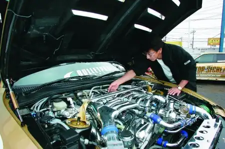 Но удвоить число цилиндров – не главное. Смоки строил долгосрочный план, и именно поэтому взял мотор с таким объемом и потенциалом. Его цель – не просто утереть нос Даиджиро Инаде на прямике. Он хочет 400 км/ч и хоть ты тресни. А если ты хочешь 400 км/ч, то тебе надо примерно 1000 л.с. Такая несложная арифметика практикуется для автомобилей средней тяжести. Если поискать информацию про эту машину в Интернете, можно найти пять различных значений мощности. Минимальное – 553 лошади. Это было начало. То, что получилось практически сразу после установки битурбо HKS GT2540. А потом, после настроек и игр с двумя блоками "мозгов", машина почти приблизилась к заветным 1000 л.с. Она развивает 950 лошадей и момент свыше 1000 Нм. Но мотор все еще отстраивается и дополняется. Чуем, близится момент истины…
