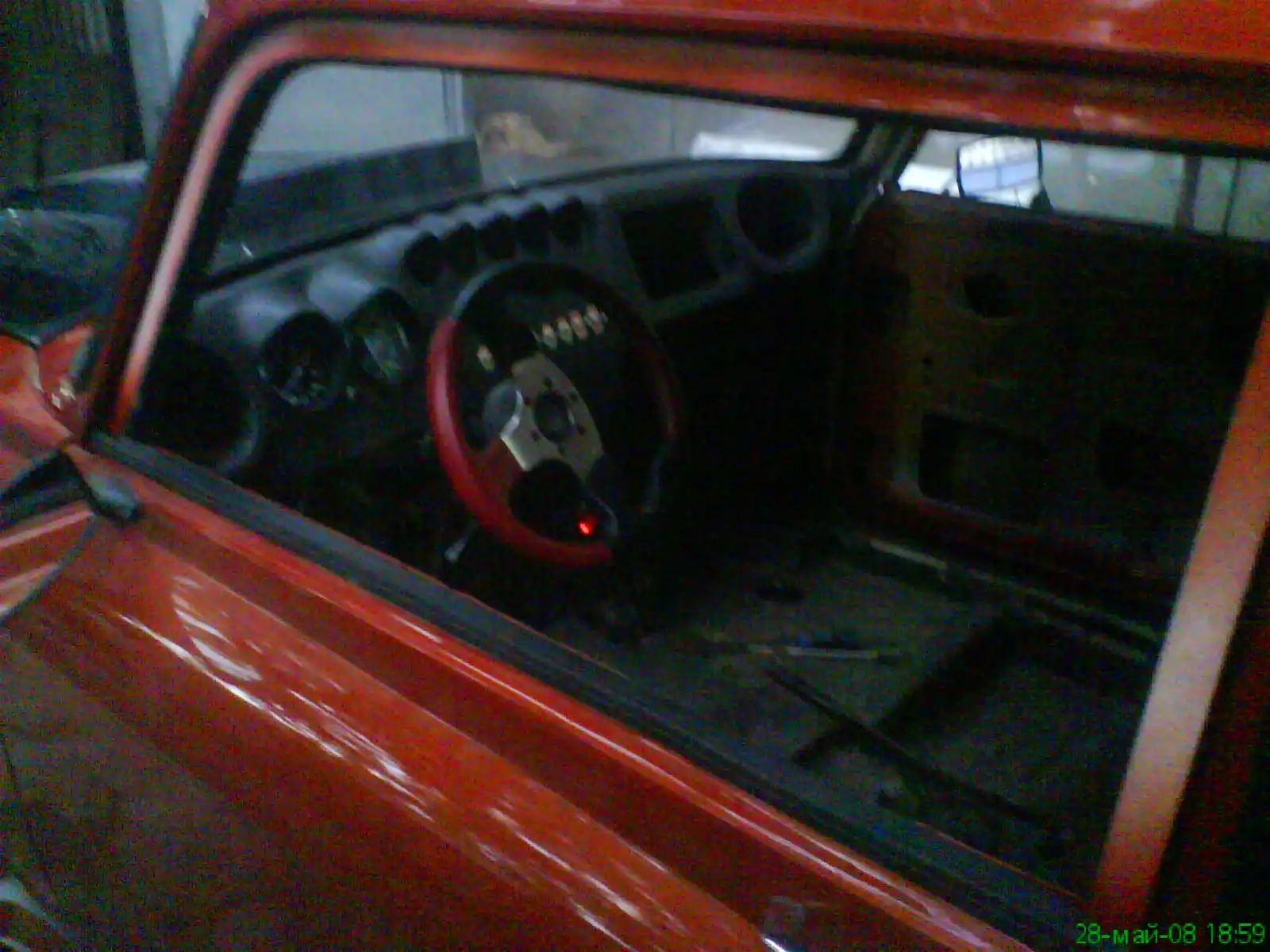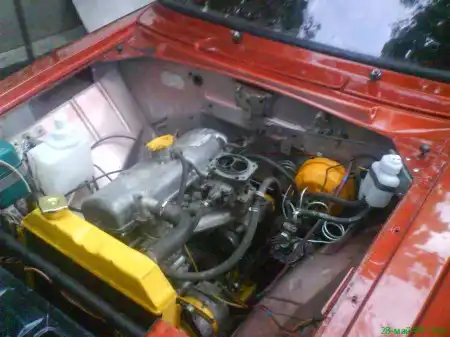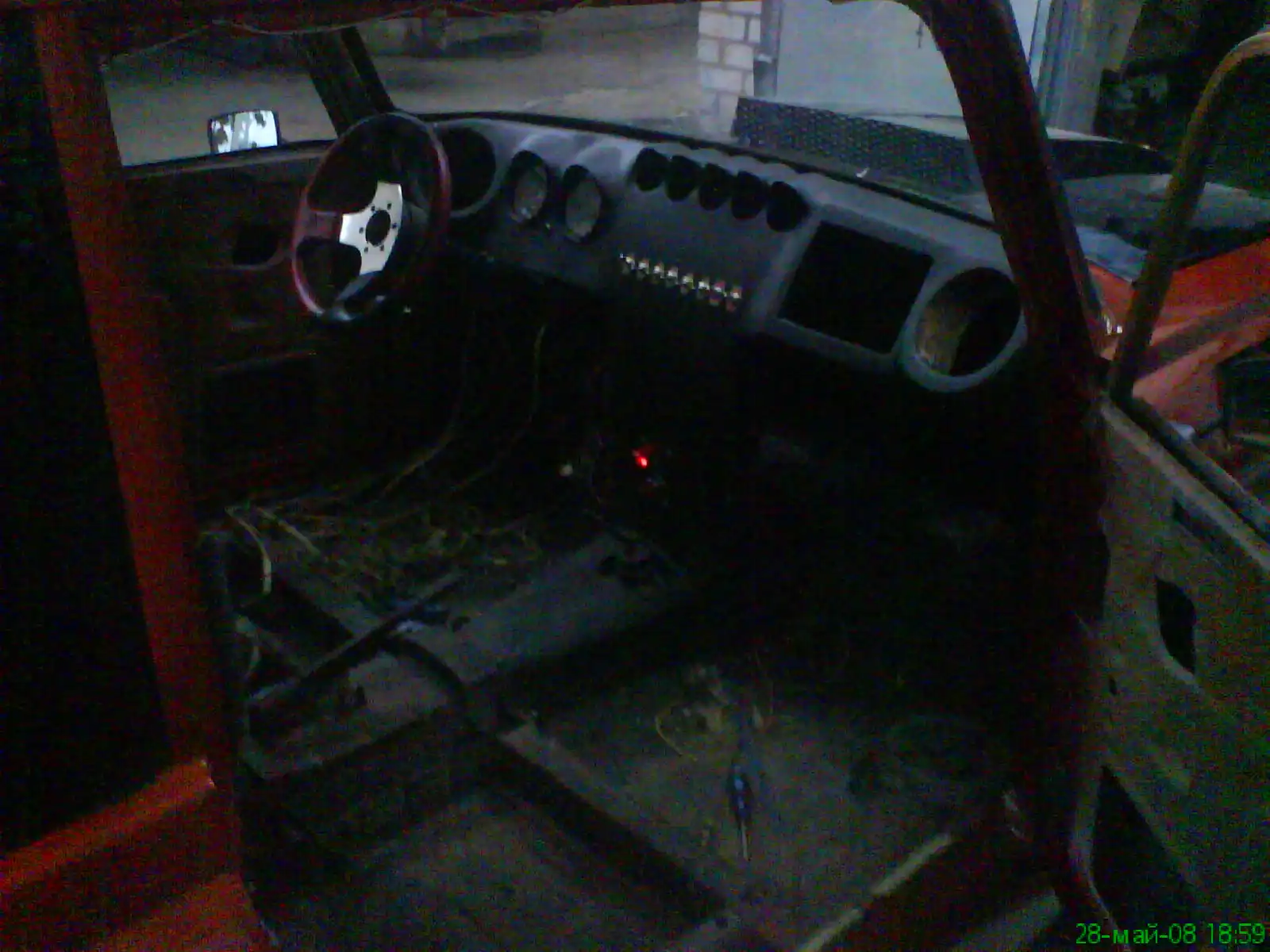 Двигатель 1,9, задняя подвеска на пружинах, блокировка дифференциала, музыка, горизонталки солекс, 16 дюймовые диски через переходники, жабры которые соединены с подкапотным пространством, старая приборная панель кастом, новая панель переделанная 2140.