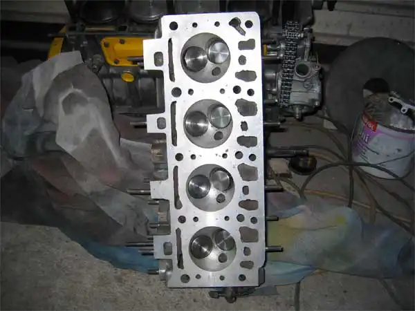 78 распред Жигулевские пружины( класические) по 2 mm шайбы под пружинами и немного доработана тарелки(уменьшен вес) клапана фаска под 30 градусов. Также направляющие в каналах срезаны.