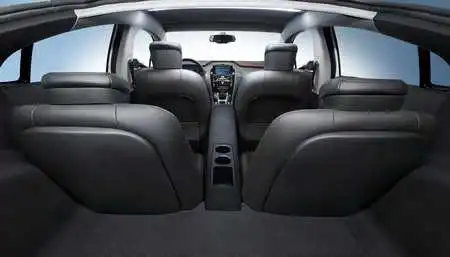 Пятидверный Ampera рассчитан на 4 пассажиров, а объем его багажного отсека составляет 301 л. Интерьер автомобиля выполнен в духе салона Jet Black со вставками из материалов красного цвета, а также элементов приборной панели, окрашенных в цвет «металлик».