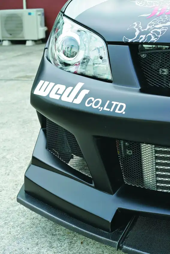 Полна чудес японская мифология. А современная интерпретация её, красочно выражена во внешности этой «Субы». Окрестили автомобиль по-японски жизнеутверждающе: «Черная дыра». Однако, ни злобный черный матовый окрас, ни агрессивные драконьи винилы не пугают так, как агрессивнейший обвес. Боковые щели в переднем бампере, а-ля «Мурсьелаго», причудливые «острые» пороги и диффузор на заднем бампере, традиционное карбоновое антикрыло и слегка измененный разрез фар – вот что по-настоящему страшно. Даже хромированные 19-ти дюймовые колеса здесь очень к месту. Тем более, что японские ребята настолько безбашенные, что нисколько с хромом не церемонятся. Как говорится, и в дрифт и в спринт, и в глубокие лужи.