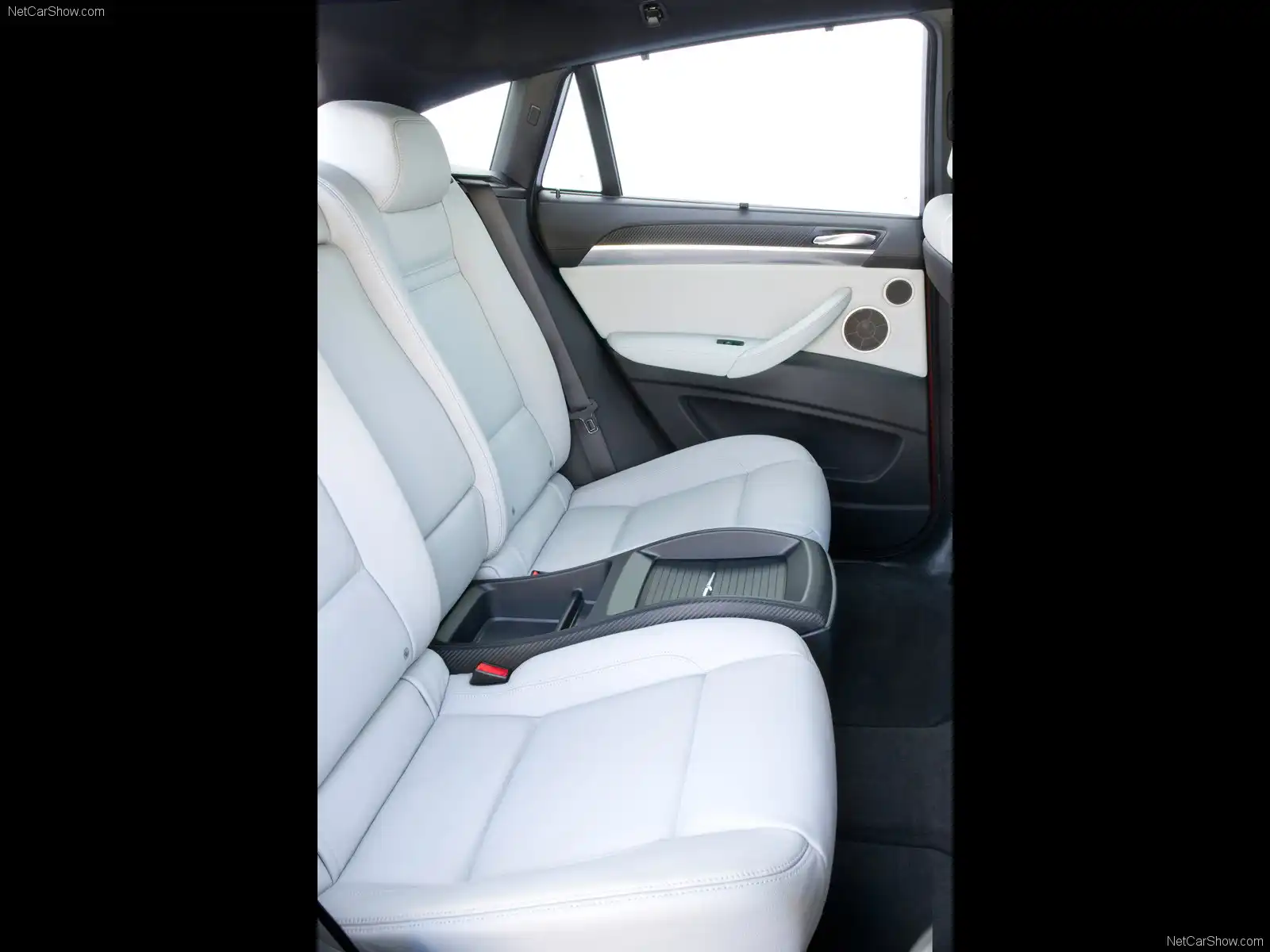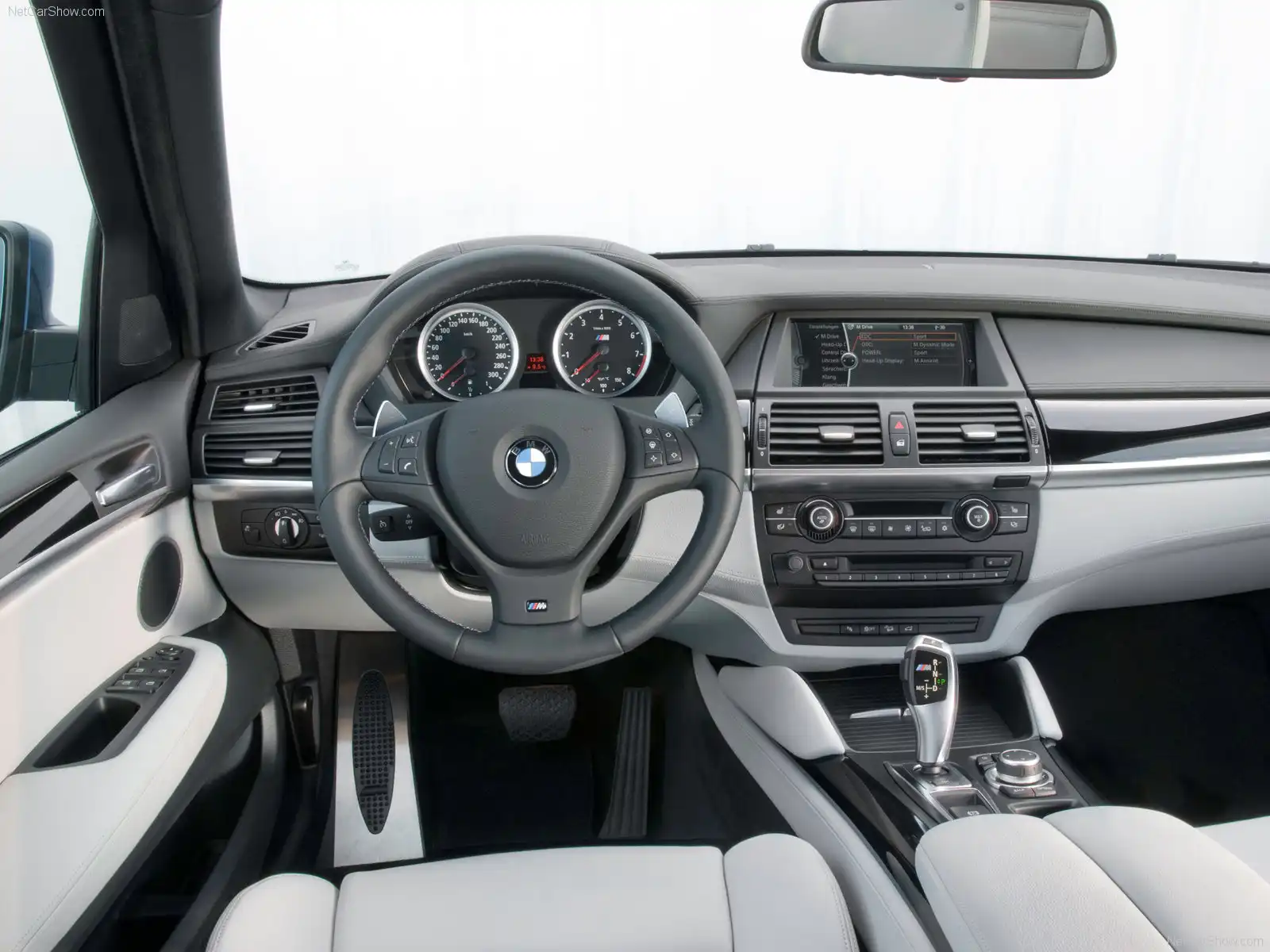 Во внешности новых BMW, прежде всего, бросается в глаза агрессивный обвес, выполненный в той же манере, что и на M-версиях «пятерки» и «трешки»: вычурные линии, огромные воздухозаборники, закрытые крупной сеткой. Есть изменения и в деталях. Все элементы, выполненные раньше из черного пластика (окантовка колесных арок, пороги, нижняя часть юбок) теперь окрашены в цвет кузова, а хромированные (окантовка окон, «ноздри» решетки радиатора) наоборот, окрашены в черный. 20-дюймовые колесные диски разработаны специально для М-версий X6 и X5.