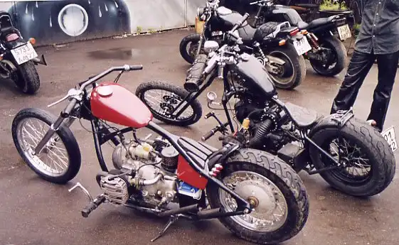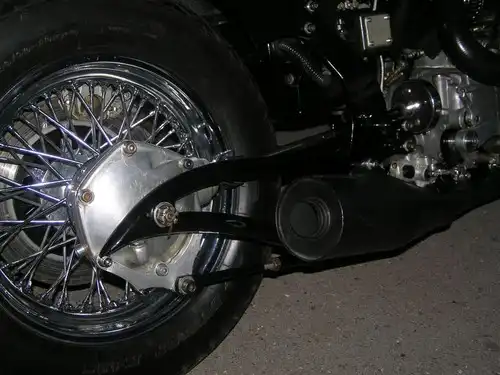 всё поставишь, если бы цепь была или ремень, она была бы с другой стороны, ибо напрямую от коробки не пустишь => на этом мотоцикле стоит кардан маятник крепиться к мосту, а как там крепления колеса реализовано(а-ля дукатти) чесно сказать сам ещё не допёр.