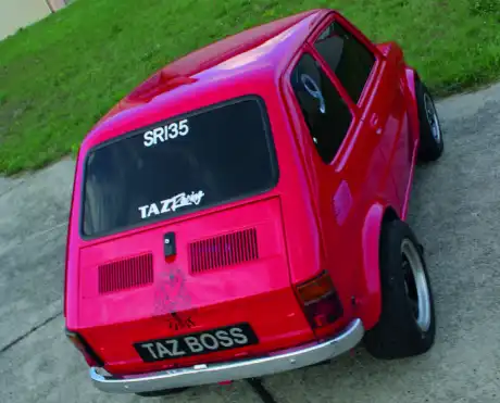 Брат Марк, дочка Люси еще долго корчились от смеха, после того как увидели авто. Они смеялись, а Крис терпеливо вынимал трехлитровый V6 из отцовского Ford Capri. К кузову "Фиата" уже была приделана передняя подвеска с рулевым управлением от Vauxhall Viva, с "Форда" донору перекочевали рулевая колонка, педальный узел и задний мост. В стоке на этом авто мотор стоит сзади, но большой мотор, что характерно, туда никак не влезал. Однако места под крышкой багажника оказалось достаточно для V6 3,0. Подрезать, конечно, пришлось изрядно, но за два дня работ мотор встал. Коробка и укороченный кардан хоть и сожрали часть комфорта, зато для сиденья место осталось.