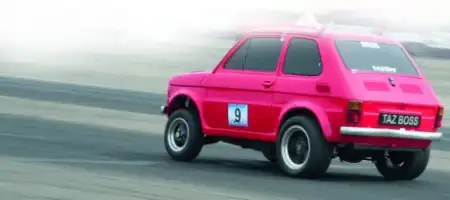 Первым V8, попавшим под капот машинки, стал 5-литровый мотор от Chevrolet El Camino. Проблему с прыгучестью удалось решить, но время на квотере – меньше всего на секунду. Крис отчаялся. Но на глаза попался настоящий Small-Block, который был вдобавок "слегка взбодрен". Как его поставить в польский "Фиат", он уже знал... Он добился своих десяти секунд на квотере...