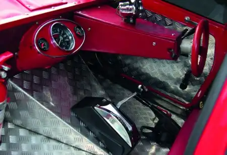 Моторный отсек пришлось переваривать заново. КПП потребовала практически полного удаления моторного щита и серьезной переделки днища автомобиля. Водительское сиденье было снято, рулевой вал и педальный узел сдвинуты ближе к заднему сиденью. А местом для пилота стала стандартная задняя скамейка, обтянутая кожзаменителем и снабженная гоночными ремнями.