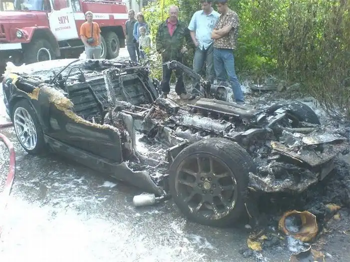 я по телику видел...эта машина,бизнесмена молодого, пацанчику лет 26...с ним ни чего не случилось,он не был в машине,а машину сожгли