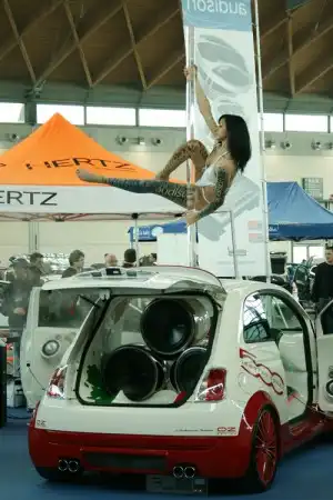 Производителей мобильной электроники на "My Special Car Show" на этот раз было маловато – сказывается и текущая экономическая ситуация, вынуждающая компании подсократить выставочные бюджеты, а также календарная близость апрельской международной (но прежде всего – главной для Европы) выставки "Car+Sound", проводимой в Германии в этом году на новом месте, в Кельне вместо традиционного Зинцхайма. Среди представленных на "My Special Car Show" производителей тотально доминировал концерн Elettromedia со своими брендами Audison, Hertz, Audison Connection и AZ Audiocomp. В этом нет ничего удивительного, поскольку выставочная картина всего лишь отражает ситуацию на итальянском рынке высококачественной автомобильной аудиотехники, где Audison и Hertz уверенно лидируют. А кроме того, Elettromedia является одним из непосредственных инициаторов зарождения "My Special Car Show" семь лет назад и традиционно - активнейшим ее участником. Компания подготовила не только эффектно оформленный стенд с интереснейшими новинками продукции и демокарами, но и собрала непосредственно возле него обширнейшую "тусовку" автомобилей с инсталляциями на их компонентах – в общей сложности практически полностью оккупировав один из больших залов площадью свыше 2 тыс. кв.м. Несмотря на то, что в различных клубах и соревнованиях в других залах поменьше размером инсталляции на Audison и Hertz встречались там и сям, было интересно посмотреть на них, собранных в одном месте.