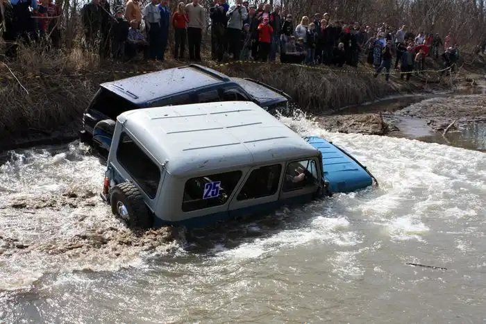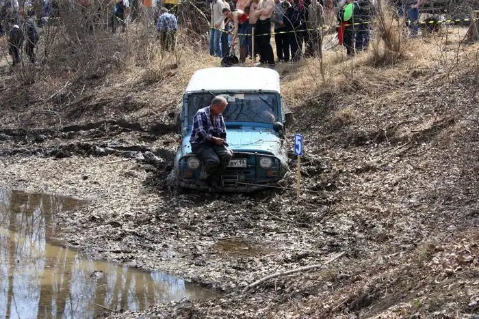 25-26 апреля на протоках реки Абакан за поселком Красный Абакан состоялся джип-триал. В первый день участвовали любители на полноприводных авто, проходили достаточно простую трассу, выполняли задания и прочее. Второй день 26 апреля, состоялся заезд профессионалов были участники из близь лежащих городов Хакасии и юга Красноярского края. Необходимо было пройти трассу, стартовали с интервалом 10 минут в порядке турнирной таблицы, на трассе были элементы различной сложности. Экипажи на разных машинах, уровень прокачки то же разный, в общем смотрим. лидер конечно на УАЗе 25 номер :)))))) старт был в 12.00 катались до 17