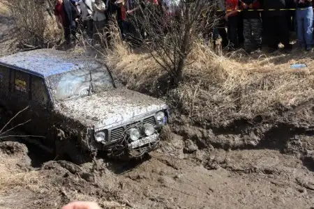 машин 5 сошло с трассы с поломками, один с повреждением рулевой, парочка с коробкой передачь, один лебедку сломал.