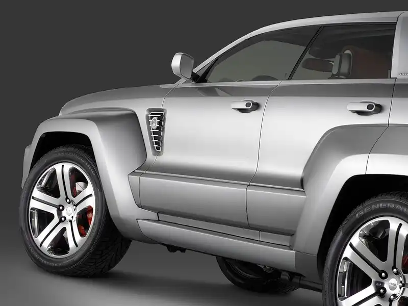 Как сообщалось ранее, этот концепт-кар построен на базе шасси Jeep Wrangler 2007 модельного года, но отличается от него агрессивным дизайном кузова, выполненным в стиле Grand Cherokee. Ключевым элементом экстерьера новинки, помимо мощных колесных арок и фирменной решетки радиатора, стало оригинальное решение фар головного света, светильники которых "спрячут" под мощными "надбровными дугами".