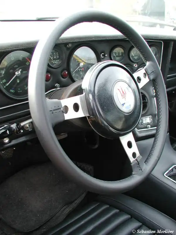 Владельцы Bora отмечали неожиданно просторную кабину для автомобиля такой компоновки, а обзорность с места водителя могла удивить даже придирчивого «гонщика». В целом салон выдержан в истинно итальянском духе натуральной кожи столько, сколько в современных автомобилях пластика. Не говоря о сиденьях и дверных панелях, кожей обтянуты внушительных размеров приборная панель, тоннель между сиденьями и стенка, разделяющая салон и моторный отсек. Интересно, что фактура этой отделки сильно отличается от нынешней, вырабатываемой специально для автомобильных интерьеров. Современные образцы практичны и прочны, однако раньше применялась нежная и «теплая» телячья кожа. Подобный подход будет прослеживаться и в более поздних моделях Maserati, когда к сверхмощным моторам и почти гоночной подвеске прилагались роскошные интерьеры. Порой обилие сверкающего лака на деревянных деталях и блеск позолоты на ободке фирменных часов заставляли сомневаться в происхождении автомобиля. Кстати, о знаменитых часах Maserati: на модели Bora они еще ничем не примечательны - черный кружок среди себе подобных однотипных указателей давлений и температур.