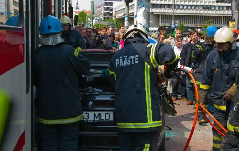 Очередная удивительная авария произошла вчера в Таллине.К счастью никто не пострадал.Это водитель BMW сидит с ноутбуком на нескольких фотографиях.Как видите вполне здоров и невридим. Чего не скажешь о машине.