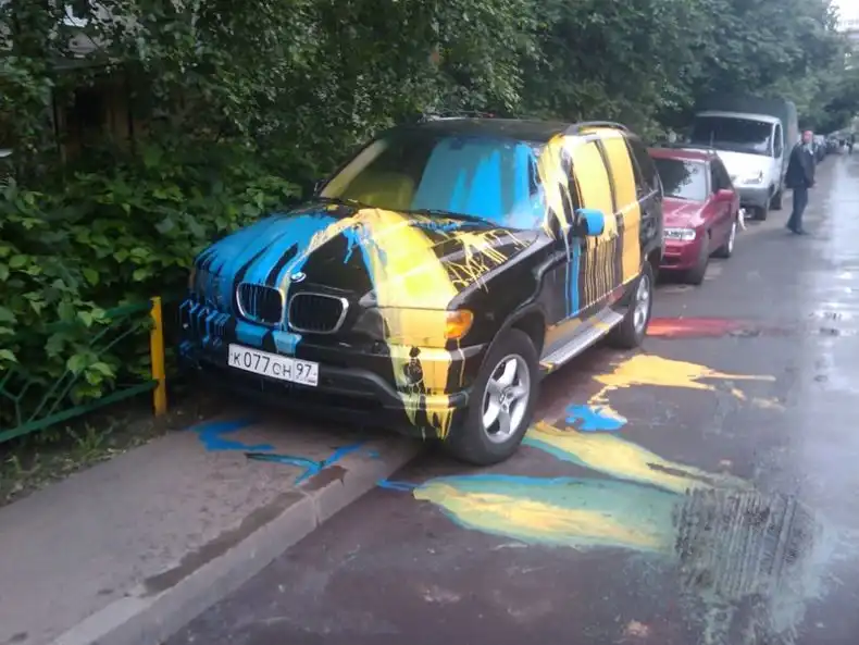 Его краской заслуженно облили, заебали уже, машин понаставят везде!