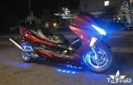 Почему такая низкая оценка? Прикотльный тюнинг! А вот твой скутер спрятался под покровом ночи!
