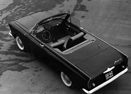 Москвич-Г2-405 заднее расположение двигателя с объемом 1 литр выдающий 74л.с. развивал 230кмч это была машина-рекордсмен, на ней было поставлено 3 советских рекорда скорости.