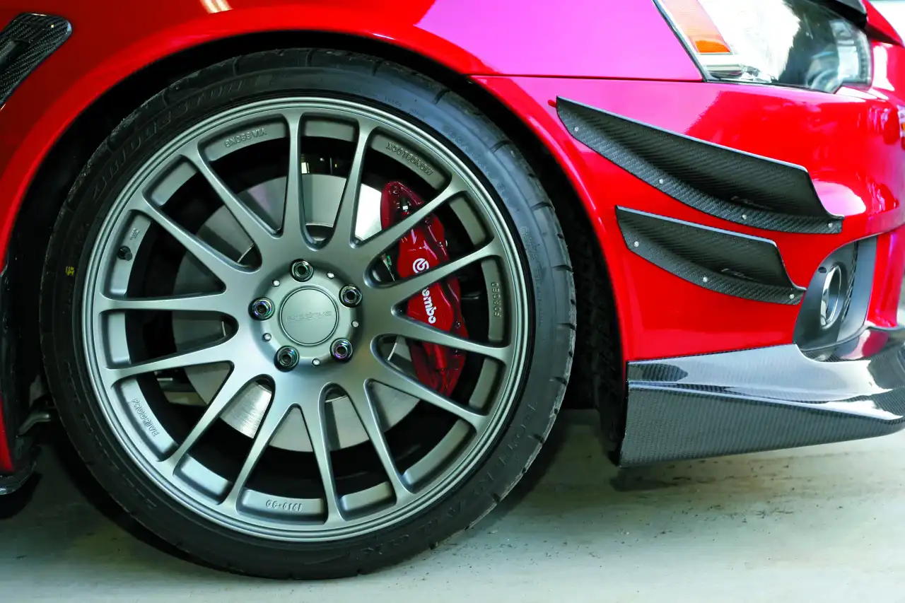 Ну зачем? Даже колеса подобрали такие, чтобы подчеркнуть разницу тормозов между Evo и обычным "Лансером". Им что, заплатила компания Prodrive? Зачем нам модель GC-014i, когда под боком замечательные диски Enkei или BBS? Ну, да бог с ней с маркой, теперь они 19-дюймовые! Батюшки мои, они никак тормоза собрались еще увеличивать! Ох, пропадет вся гениальная задумка...