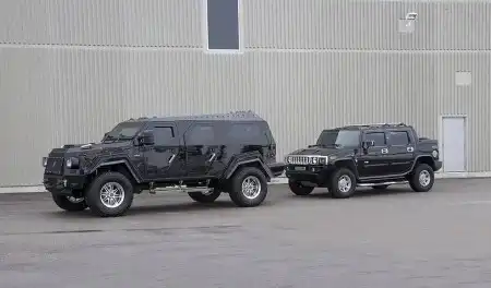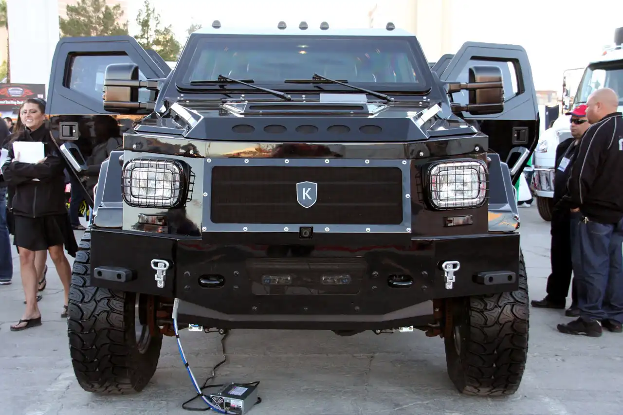Автомонстр Knight XV, весом в 4,5 т, создан на базе военного автомобиля Gurkha, который, в свою очередь, является «ближайшим родственником» Ford F-350 Super Duty. Он бронирован так, будто бы готовится к бомбовой атаке. Его двигатель V10 объемом 6.8 литров выдает мощность в 400 л.с. и крутящий момент 678 Нм. Диаметр его колес вместе с шинами составляет 40 дюймов (около 1 метра), ведь одни только колесные диски, изготовленные по авиационной технологии, диаметром 20 дюймов.