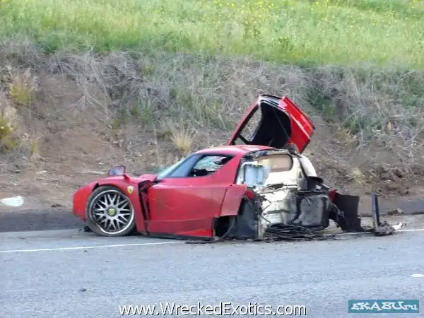 Предположительно, на скорости 261 кмч, водитель потерял управление, автомобиль начинает съезжать с дороги, подлетает на кочке. Дальше, крутясь в воздухе, Enzo с отвратительной точностью метит в крепкий телеграфный столб. Удар пришёлся между кокпитом и задней частью. Пара сантиметров в какую-либо сторону, и могли бы появиться жертвы. Пилот и пассажир ушли с места аварии на своих двоих до приезда полиции.