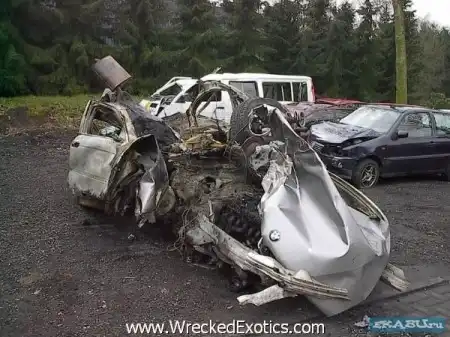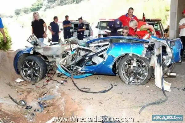 Предположительно, на скорости 261 кмч, водитель потерял управление, ... Пилот и пассажир ушли с места аварии на своих двоих до приезда полиции.