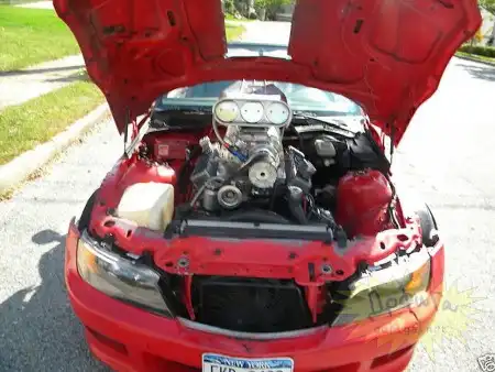Необычное то, что в BMW владелец умудрился впихнуть двигатель Edelbrock. Как, а главное для чего туда впихнули этот моторчик, теперь не понимает и сам продавец. Мало того, что мешает обзору, но и заставляет автомобиль срываться с места, будто ошпарили крутым кипятком.