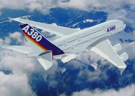 1) Airbus А380 — широкофюзеляжный реактивный пассажирский самолёт, созданный концерном Airbus S.A.S.. Двухпалубный. Высота 24 метра, длина 73 метра, размах крыла 79,8 метра. Может совершать беспосадочные перелёты на расстояние до 15 200 км.