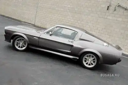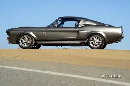 Собственно, про фильм «Угнать за 60 секунд» знают все, а вот про саму «Элеонор» и тем более Shelby GT500, – только истинные фанаты. История появления Shelby-версий Мустанга возникла из-за того, что фирме были нужны мощные версии флагманского пони-кара, чтоб успешно участвовать в гонках. Ford обратился к легендарному гонщику Кэрроллу Шелби, который в 1959 году выиграл гонку «24 Часа Ле Мана». Он-то и придумал великолепную и выпускающуюся до сих пор в первозданном виде Shelby Cobra, созданную на основе английского родстера AC Ace. Потом был Ford GT40, который так же был «ремиксован» и в нашем веке, а позже была работа над Shelby GT350 на основе Ford Mustang. Появившись в 1965 году, модификация GT350 имела кузов фастбэк (только этот и никакой другой), низкую посадку, мотор объемом 4,7 л мощностью 305 л.с. Цвет был только один – Wimbledon с голубыми полосками по кузову, а для снижения веса отсутствовало задние сиденье. Затем в 1966 году сиденье вернули, а спектр цветов расширился. Более мощная версия GT500 была представлена в 1967 году и отличалась от стока удлиненной на 7,5 см за счет фибергласа передней частью. Под капотом стоял могучий 428 блок объемом 7 л и мощностью 355 сил. До «сотни» Shelby GT500 разгонялась за 6,5 секунд, а максимальная скорость составляла 220 км/ч, чего хватало для успешных покорений гоночных треков и дрэг-стрипов. Кроме усовершенствованных подвески и дисковых тормозов на передних колесах, у GT500 была опциональная АКПП с 3 скоростями или 4-скоростная МКПП. На следующий год была представлена люксовая версия под названием King of the Road, которая щеголяла легендарным двигателем 428 Cobra Jet мощностью 335 сил. В 1969 году Mustang разжился спортивными версиями BOSS 302, BOSS 429 и Mach 1, что привело к нездоровой конкуренции в рамках одной марки. На следующий год Shelby-версия осталось такой же, как в прошлом году, хотя сам Мустанг изменился. 1970 год был последним для великолепных Shelby GT350/GT500, но сейчас Кэрролл Шелби возрождает легенду за счет добротного тюнинга нынешнего поколения Ford Mustang. Под капот компактного купе устанавливают V8 объемом 5,4 л мощностью 450 сил, делают грозный передок.