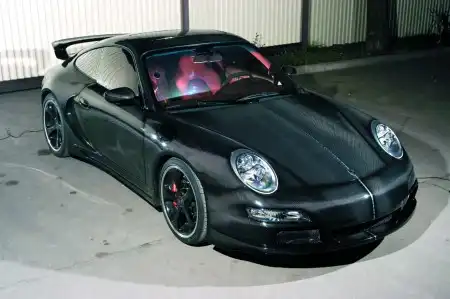 А что же обычные наблюдатели, не искушенные в особенностях работы с углеволокном? Для них это… обычный черный Porsche Carrera. Ну да – со слегка видоизмененными формами кузова. Обычный ровно до того момента, пока заинтересовавшийся необычным автомобилем человек, ведомый страстным любопытством, не станет подходить ближе. Еще чуть ближе, последний шаг…