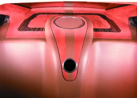 Как ни странно, главной гордостью авторов проекта является не гоночный экстерьер, а умиротворяющий салон, находясь в котором испытываешь жуткую потребность в домашних тапочках. Интерьер машины представляет самостоятельную ценность и качеством исполнения, и примененными материалами, и эмоциональным посылом, который он несет. Выбор цвета, фактуры – дело нелегкое: по-настоящему роскошных цветов не так много. Выбор пал на темнобордовый нубук с шоколадной кожей фирмы Hulshof (Королевские мануфактуры Голландии) и шпоном зебрано. Эксклюзивности добавляет и то обстоятельство, что зебрано, очень редкий и дорогой материал, является диковиной даже в мебельной промышленности. Что уж говорить про автомобильные интерьеры, где декоративные вставки, как правило, являются пластиковой имитацией. Невероятное сочетание индивидуально изготовленной анатомии сидений с оригинальным рулевым колесом, мягким объемным звучанием акустической системы с низким бархатным звуком сабвуфера, расположившегося в недрах обшивок.