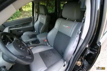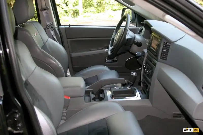 Остался только постоянный полный привод, который вместе с антипробуксовочной системой не даст провернуться колесам при любом старте с места. Крутящий момент распределяется в соотношении 48/52 процента, где большее количество тяги приходится на заднюю ось. Интерьер, подобно внешности, не блещет гаммой оттенков – он может быть только серого цвета. Комплектация SRT8 включает в себя цветной монитор для навигационной системы, но DVD диска с картой в машине почему-то не оказалось, CD-чейнджер и динамики Boston Acoustics, камеру заднего вида, люк, и все другие опции, доступные для обычного Grand Cherokee в комплектации «Overland».