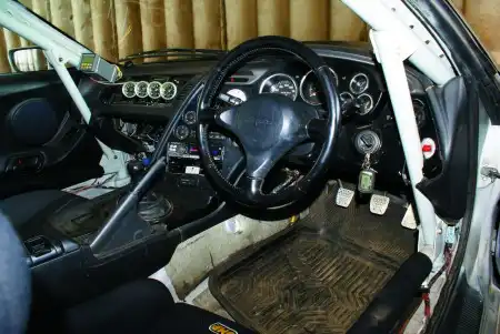 Компрессор и турбина высокого (теоретически до 2,5 бар) давления серьезно повышают нагрузку на поршневую группу и детали головки блока. Чтобы однажды мотор не превратился в мясорубку, его серьезно усилили при помощи шатунов и распредвалов Crover, титановых клапанов, вкладышей коленвала, а также иных ремней, роликов и коллектора из нержавеющей стали, сконструированного специально под механический компрессор. Впускной коллектор, кстати, оснащен впрыском воды, для того чтобы сбить детонацию. Это позволяет повышать давление турбины, избегая применения топлива с большим октановым числом. Сейчас серебристое купе переваривает гражданский «девяносто восьмой», хотя в гоночном режиме используется топливо с октановым числом до 116. При таких доработках понадобилось два ряда форсунок по 1200 куб. см/мин пара и четыре бензонаса: два Wallbro на подачу и два на подкачку. Турбину, кстати, опустили чуть ли не под двигатель, чтобы оставить место для механического компрессора. На этом фоне «нулевик» в переднем крыле воспринимается как нечто само собой разумеющееся. Да, чуть не забыли об интеркулере от GReddy, здесь он работает и на механический компрессор, и на турбину.